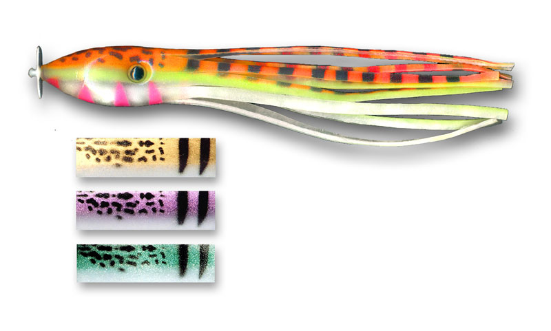 Esca artificiale realizzata interamente in una speciale gomma siliconica rinforzata, secondo un brevetto esclusivo.Ideato per la traina di altura, trae ispirazionedai Kona del tipo soft head, dai quali però si differenzia per la forma più naturale, il Pluggy Squid si è dimostrato molto efficace nella traina lenta di fondo, specie se indirizzata al grosso dentice. In mediterraneo si sono registrate catture di di cernie e ricciole di media taglia.